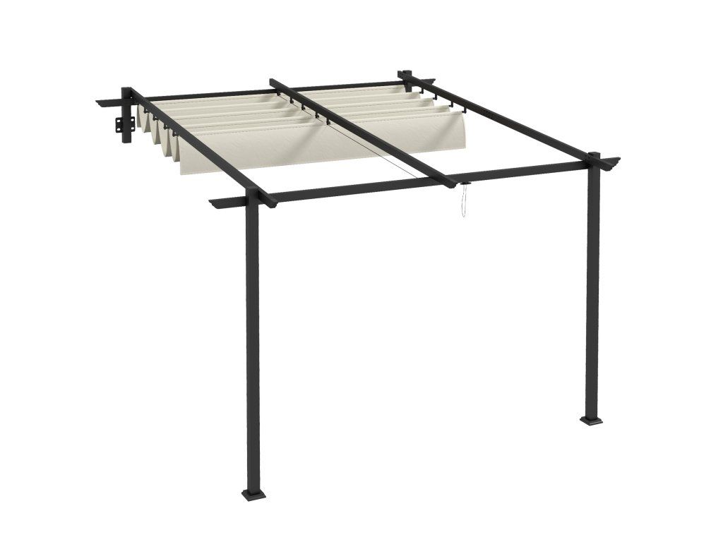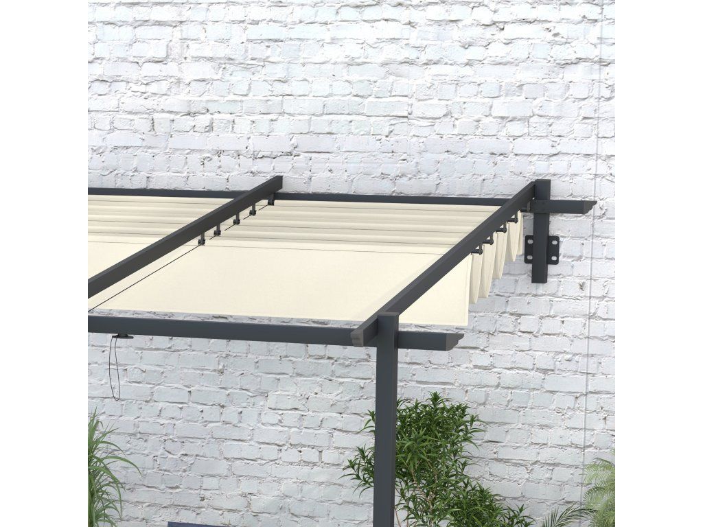 Zahradní pavilon 3 x 3 m, stahovací střecha, montáž na stěnu, kovový rám, krémově bílá barva