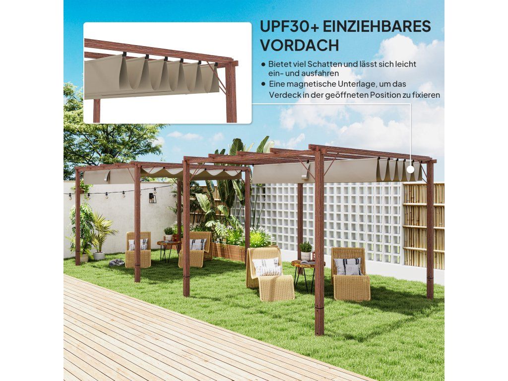 - Všestranné venkovní použití: Tento zahradní altán se zatahovací stříškou nabízí flexibilní prostor pro venkovní akce, grilování nebo odpočinek
