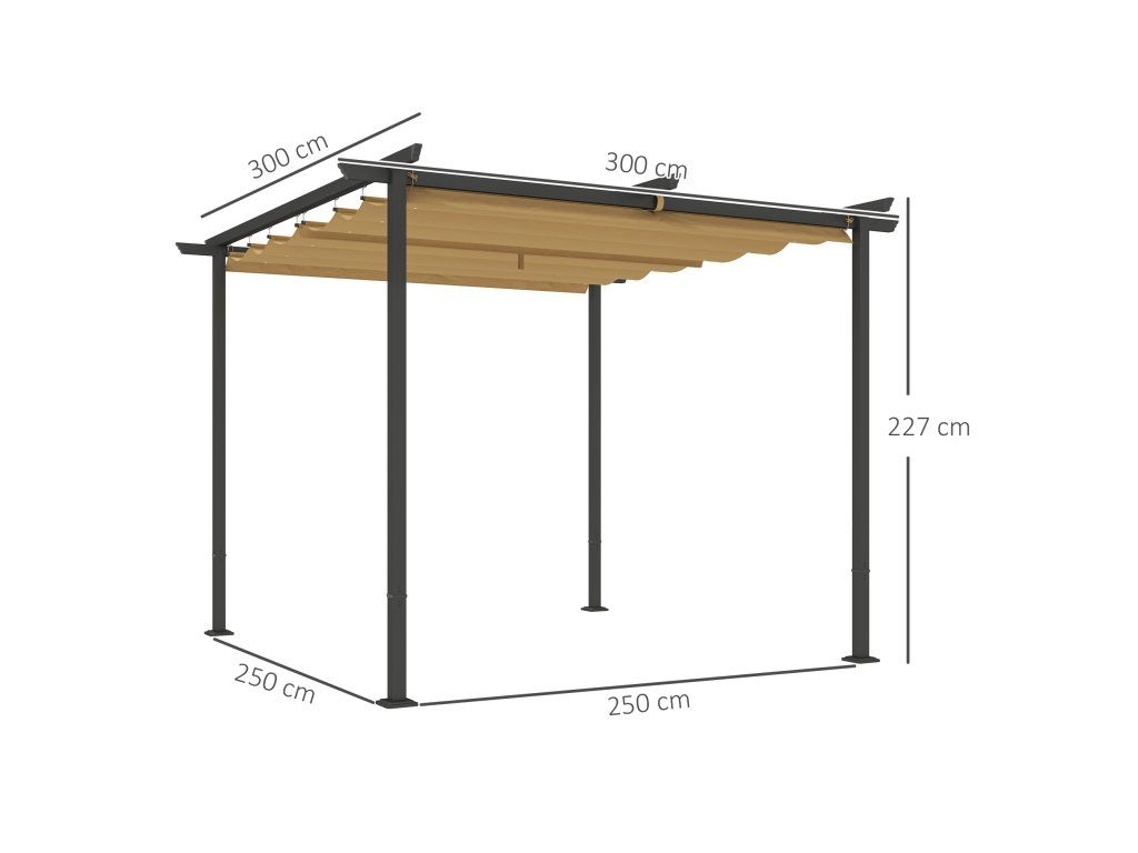 - Celkové rozměry zahradního přístřešku: 300L x 300W x 227H cm. Nutná montáž. Pro montáž a instalaci se doporučují dvě osoby