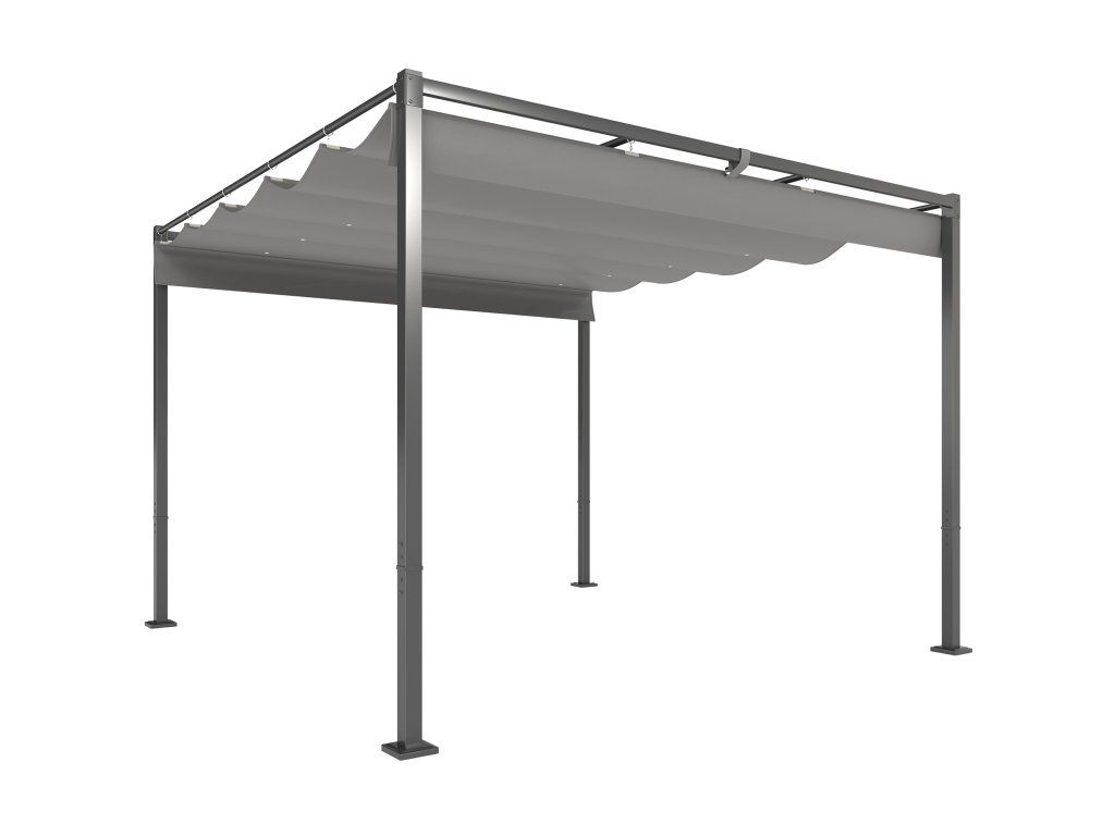 zahradní pergola 3 x 3 m se stahovací střechou, pavilon, stínící stříška, UPF30+, šedá barva