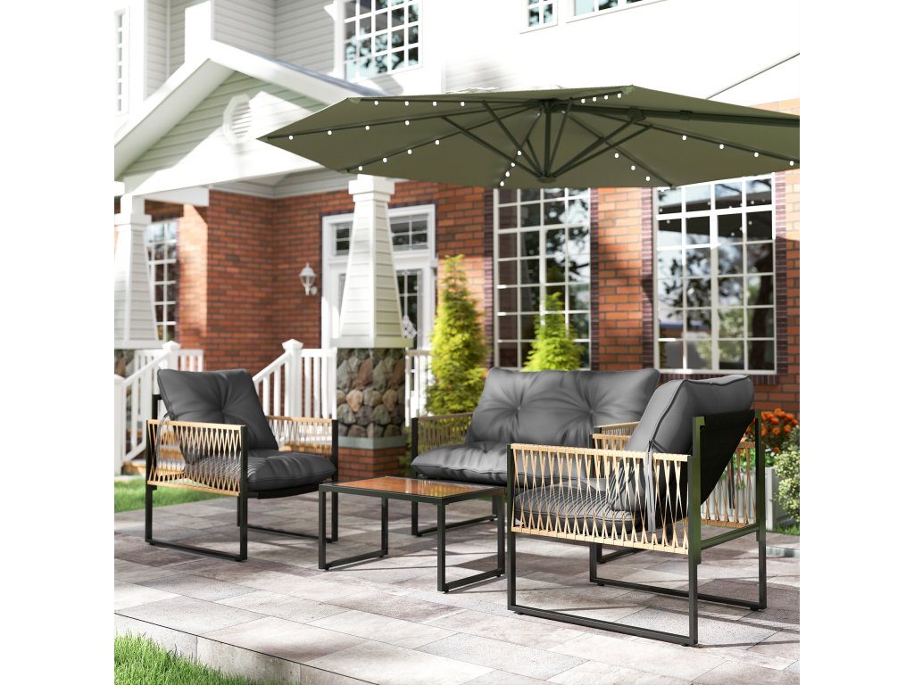- ✔ Materiál: PE ratan, polyester, ocel