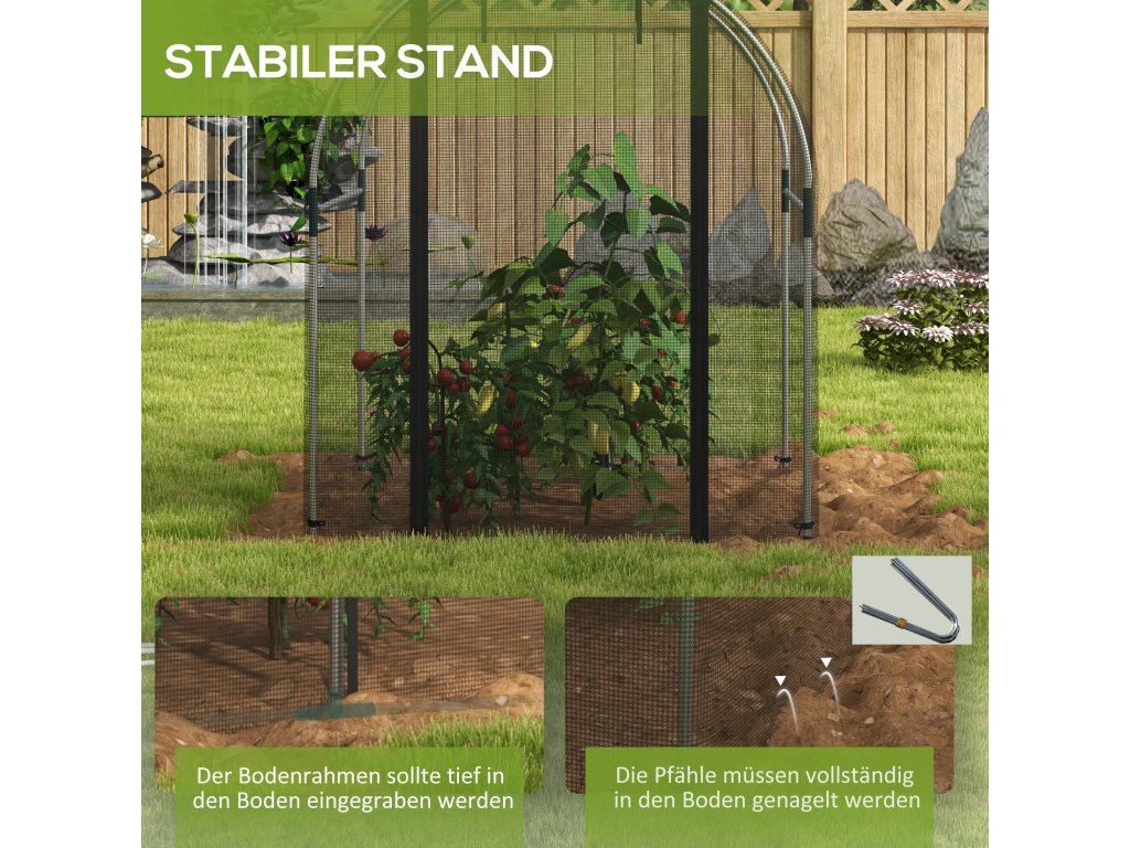 - Stabilní opora: Zasuňte spodní rám hluboko do země, aby vaše síť na ochranu rostlin zůstala pevně na místě i při silném větru