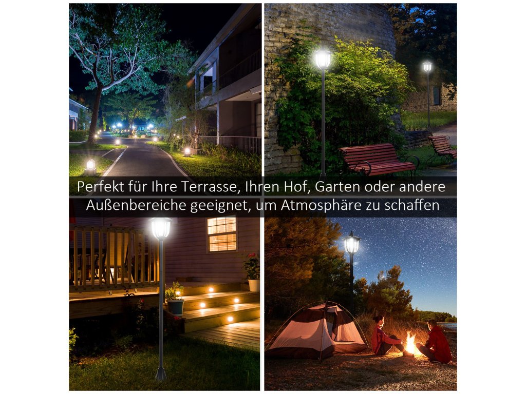 Zahradní solární světlo Outsunny LED zahradní lucerna 30/60 lumenů, černý plast, Ø26,5 x H177 cm, ideální pro zahradu a terasu | Aosom.de
