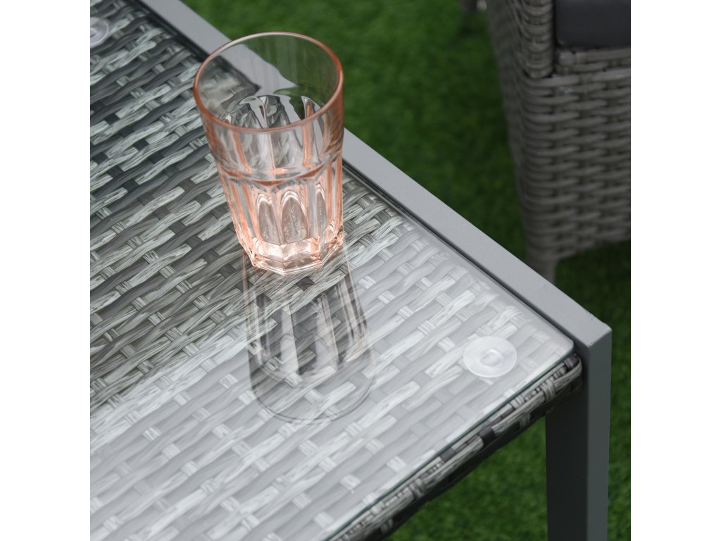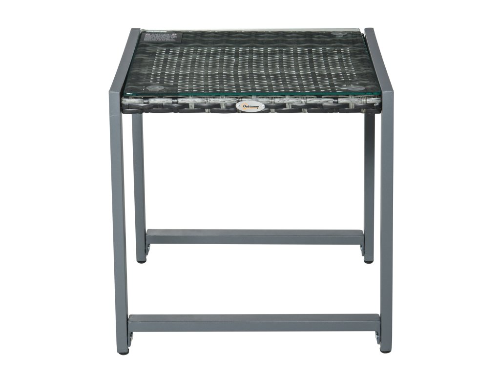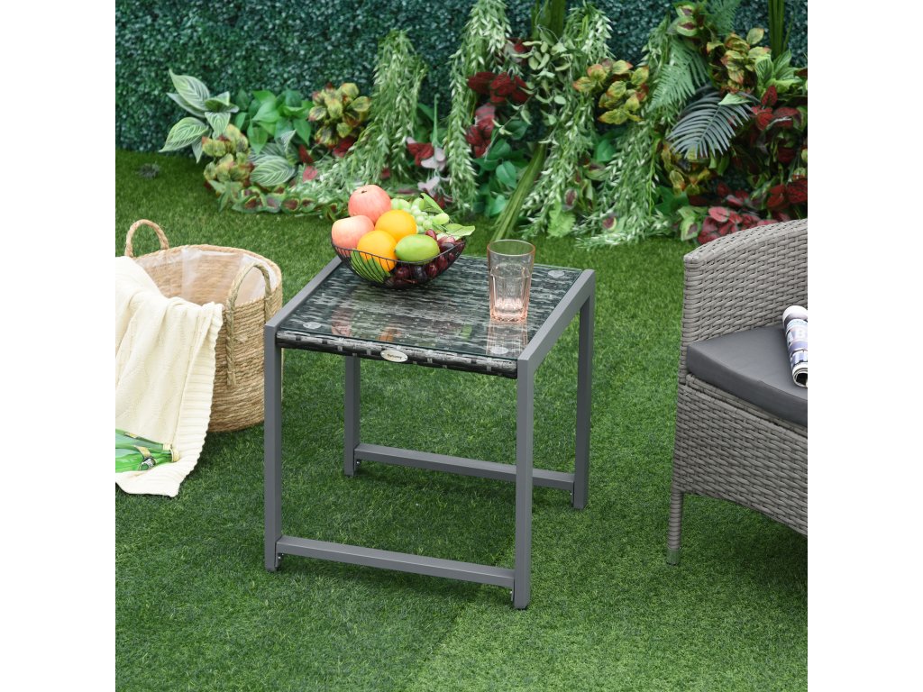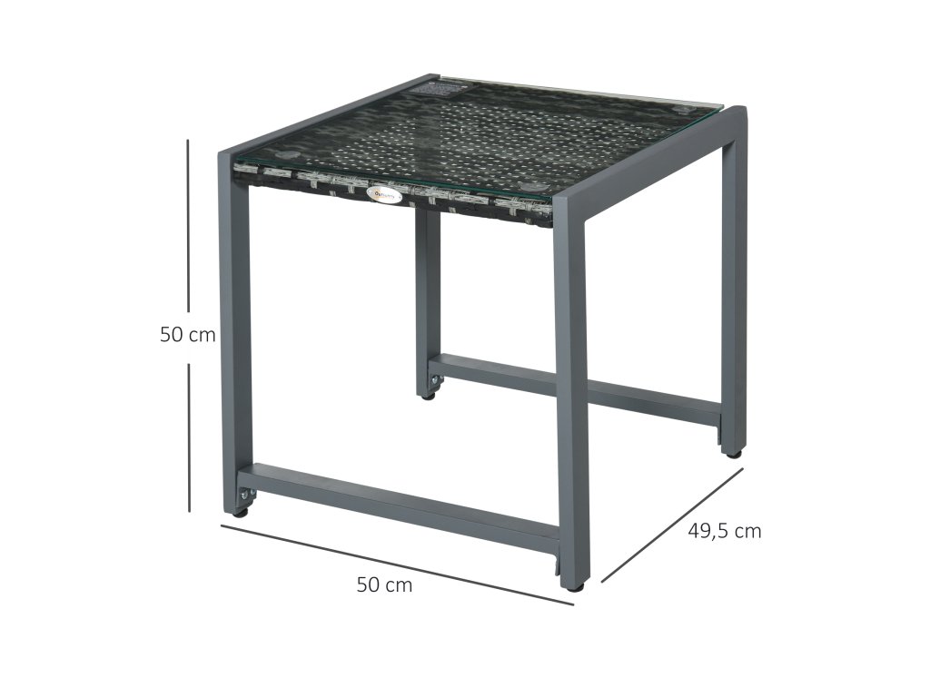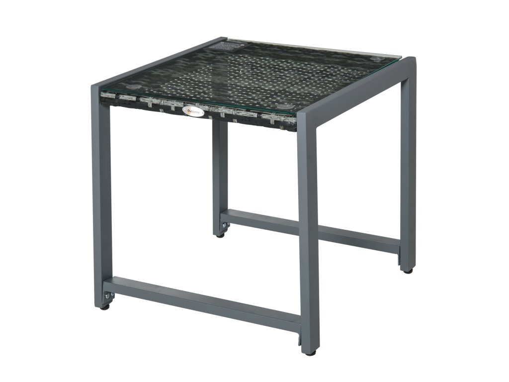 Zahradní stolek Outsunny® s tvrzeným sklem, polyratanem a hliníkem, odolný proti povětrnostním vlivům a moderní pro zahradu, balkon, terasu | Aosom.de