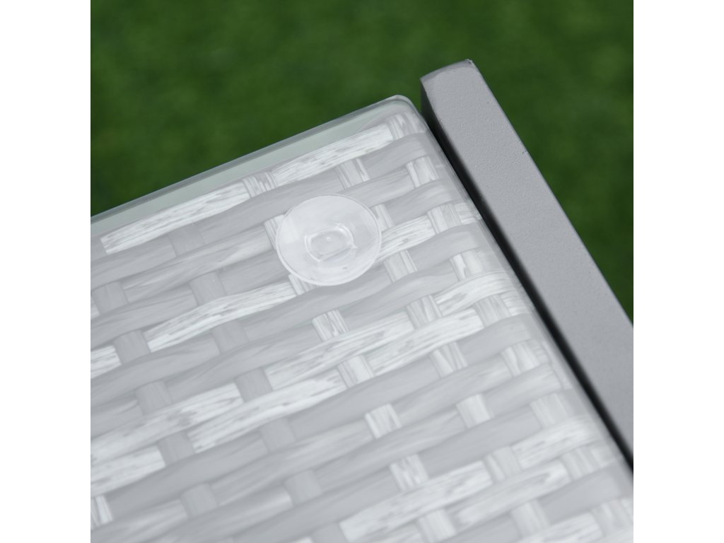 - ✔ Materiál: polyratan, hliník, tvrzené sklo