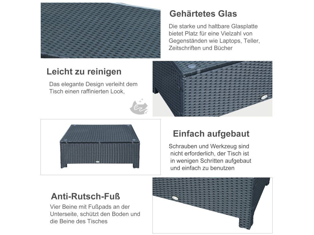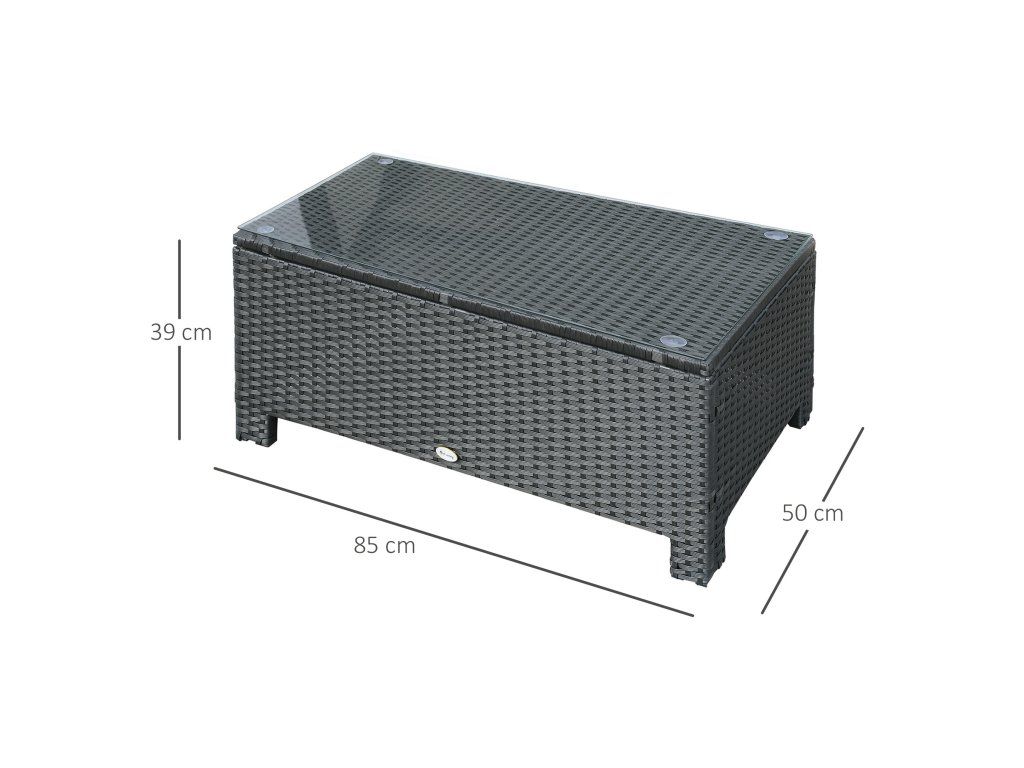 Zahradní stolek Outsunny z polyratanu odolného proti povětrnostním vlivům černý 85x50x39cm na balkon terasu | Aosom.de