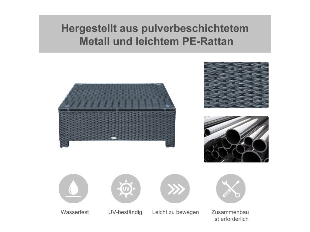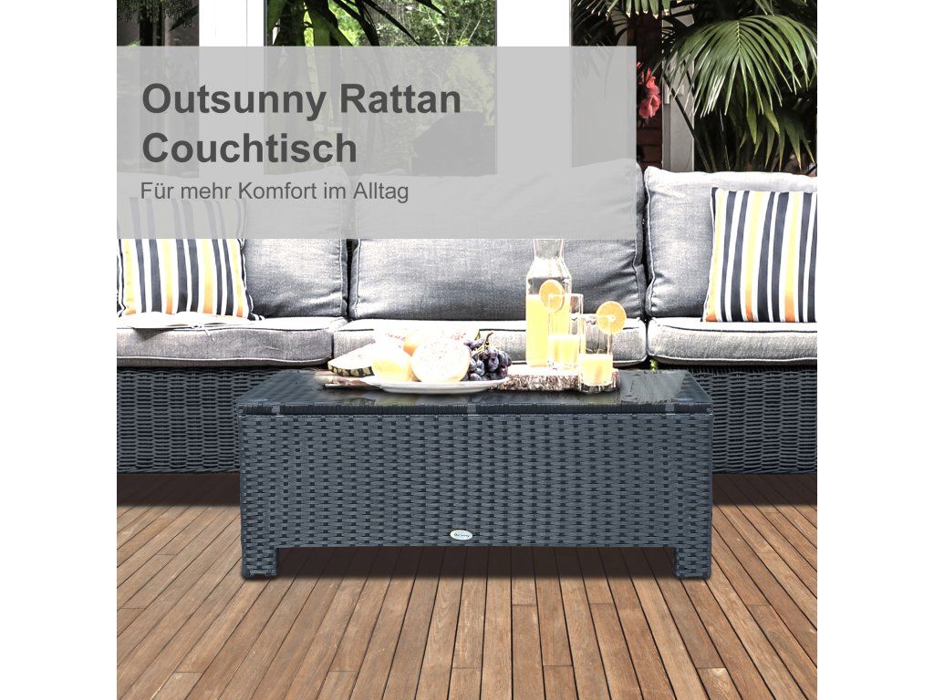 S tímto zahradním stolem od společnosti Outsunny si užijete ještě více úložných možností při příští párty u bazénu nebo venkovním grilování! Díky jeho nízké hmotnosti ho lze rychle přemístit, a když ho nepoužíváte, můžete ho jednoduše uložit a ušetřit tak místo. Pozinkovaný kovový rám a polyratan odolný vůči povětrnostním vlivům zajišťují stabilitu a odolnost a zároveň také dobře vypadají.
