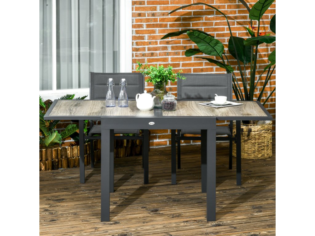 Zahradní stůl Outsunny, jídelní stůl s rozkládací deskou, stůl na terasu se vzhledem dřeva, hliníkový stůl na balkon, béžová+šedá, 160 x 80 x 75cm| Aosom