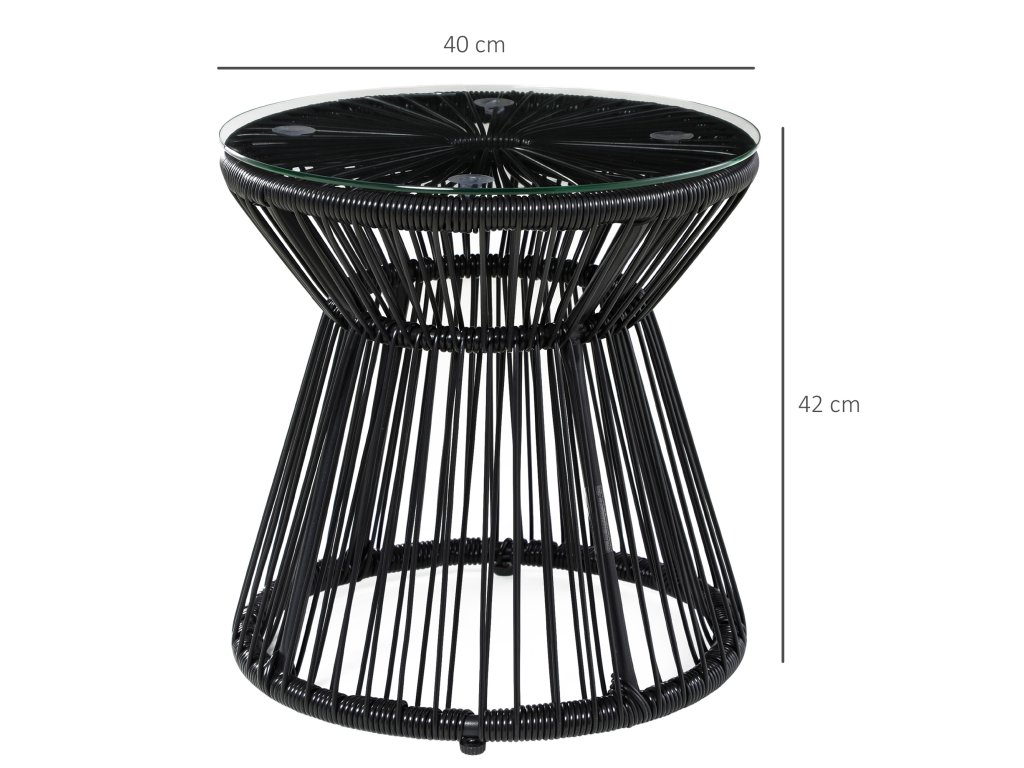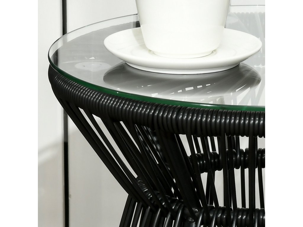 Zahradní stůl Outsunny kulatý s designem dutého bubnu, bistro stůl se skleněnou deskou, černý konferenční stolek na zahradu a balkon |