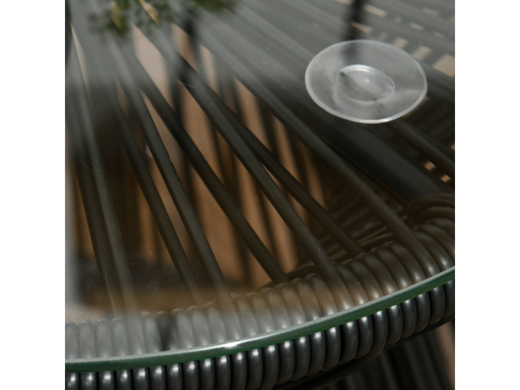 - Deska z tvrzeného skla: Tento venkovní odkládací stolek se dodává s deskou z tvrzeného skla o tloušťce 5 mm. Skleněná deska je pevná a stabilní a je vhodná k odkládání potravin a nápojů.
