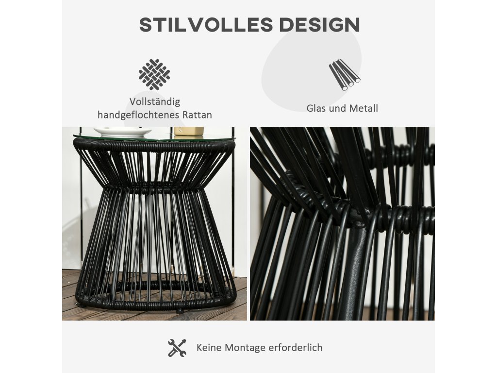 Malé zahradní stolky nejsou bezvýznamné, jsou důležitým vybavením útulné zahrady. Tento stolek od společnosti Outsunny dodá vašemu venkovnímu prostoru moderní boho styl. Ratanový zahradní stolek lze snadno přemístit z jednoho místa na druhé. Je vhodný jako odkládací stolek na terasu, zahradu nebo verandu. Ať už jako stolek na rostliny, konferenční stolek nebo jako polička - tento zahradní stolek vylepší každý venkovní prostor.