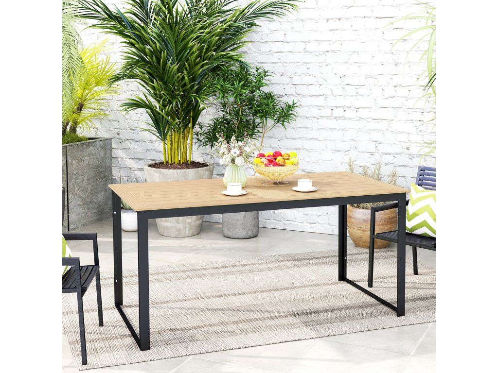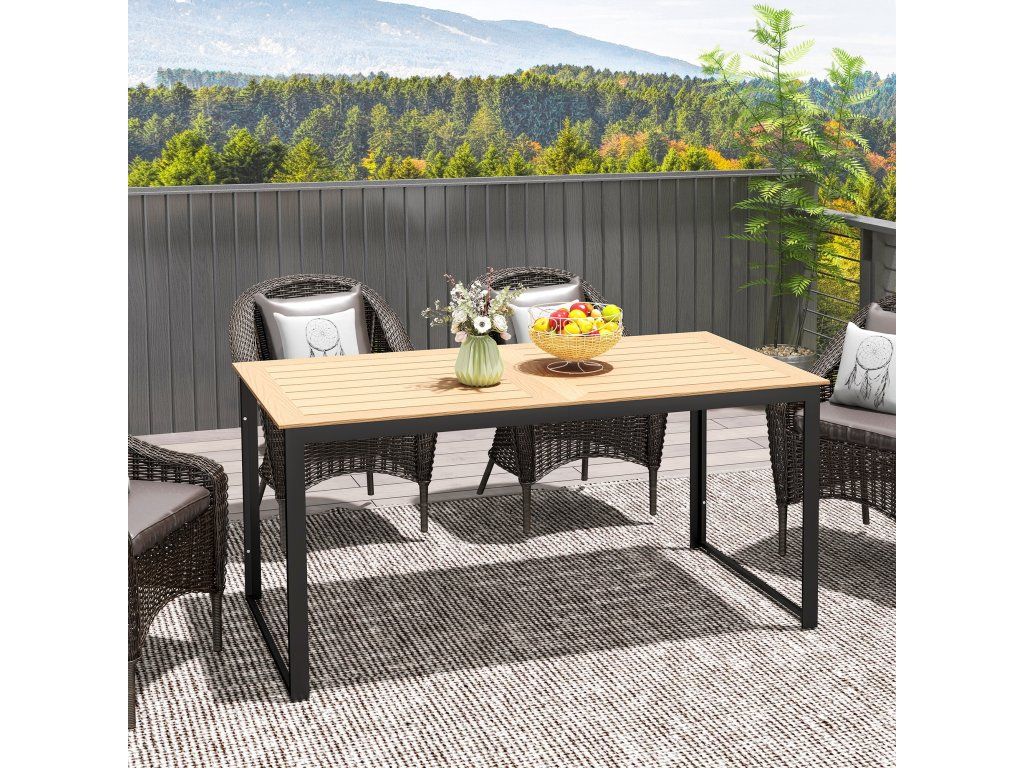 - Elegantní design: Tento zahradní stůl s dřevěným vzhledem a lamelovou konstrukcí dodá každé zahradě nebo terase elegantní nádech.