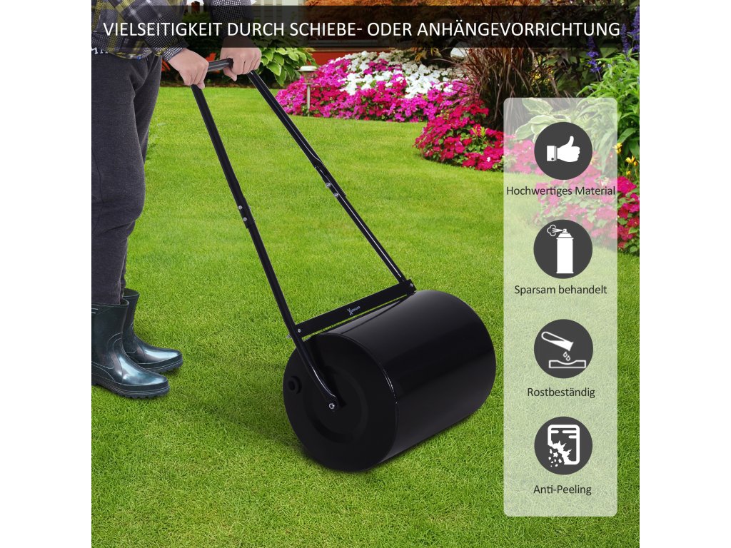 Zahradní válec Outsunny s U-rukojetí průměr 40 cm 60 l náplň z vodního písku kovový černý 57 x 40 x 123 cm pro dokonalé trávníky | Aosom.de