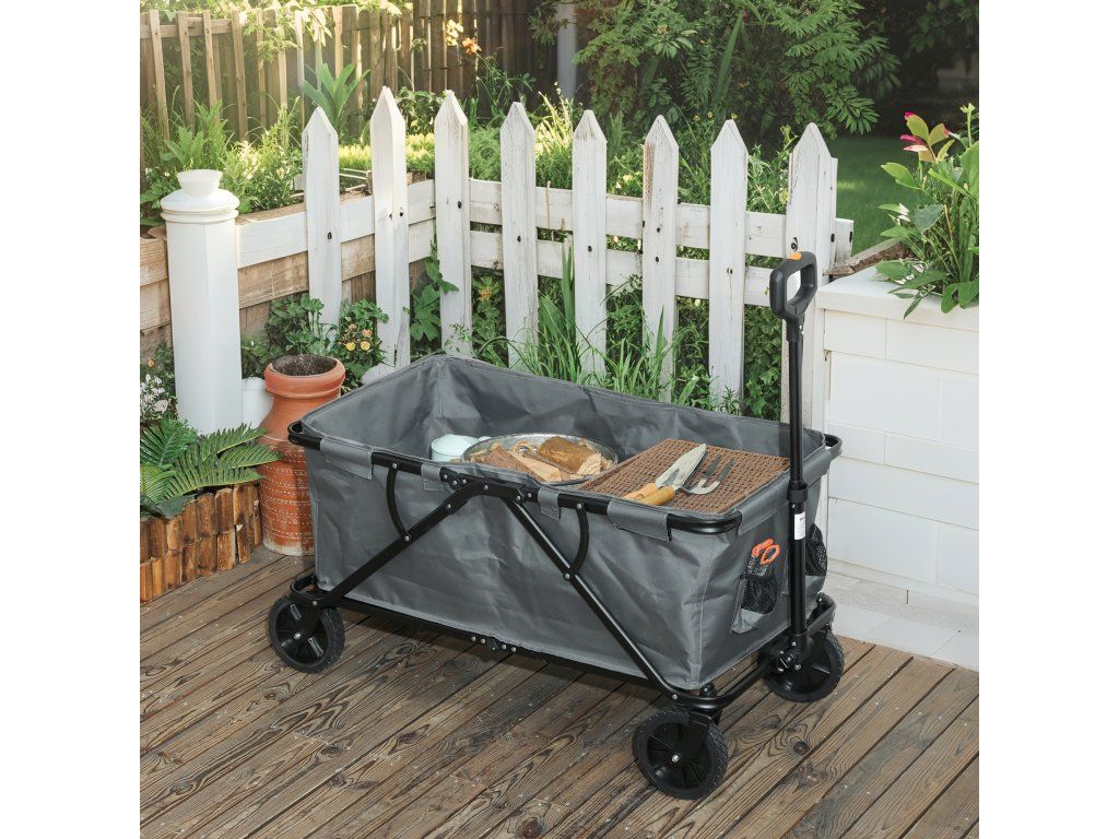 - Prostorný úložný prostor: Tento ruční vozík má velkou přepravní tašku o objemu 160 l, dvě síťované kapsy a kapsu na časopisy, které poskytují dostatek místa na nářadí a nezbytné věci při venkovních aktivitách.