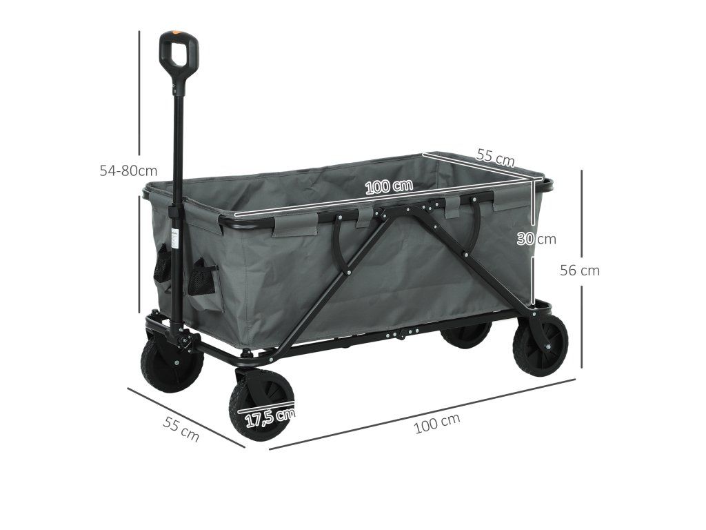 - Celkové rozměry skládacího vozíku: 100L x 55W x 56H cm. Rozměry ve složeném stavu: 83L x 56W x 26H cm. Nosnost: 120 kg. Nutná montáž.