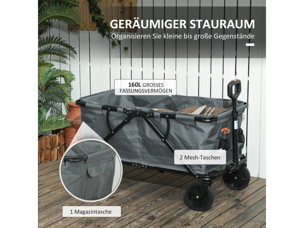 Zahradní vozík Nosnost 120 kg, skládací Přepravní vozík s odnímatelnou plachtou 160 l Tmavě šedá barva