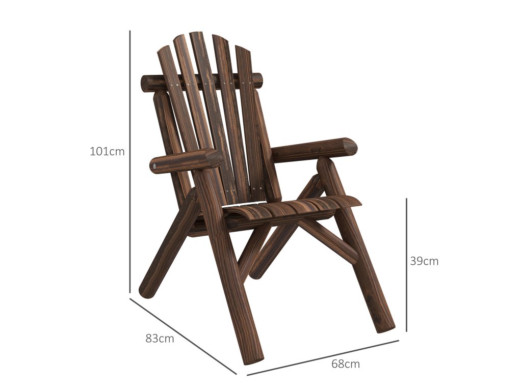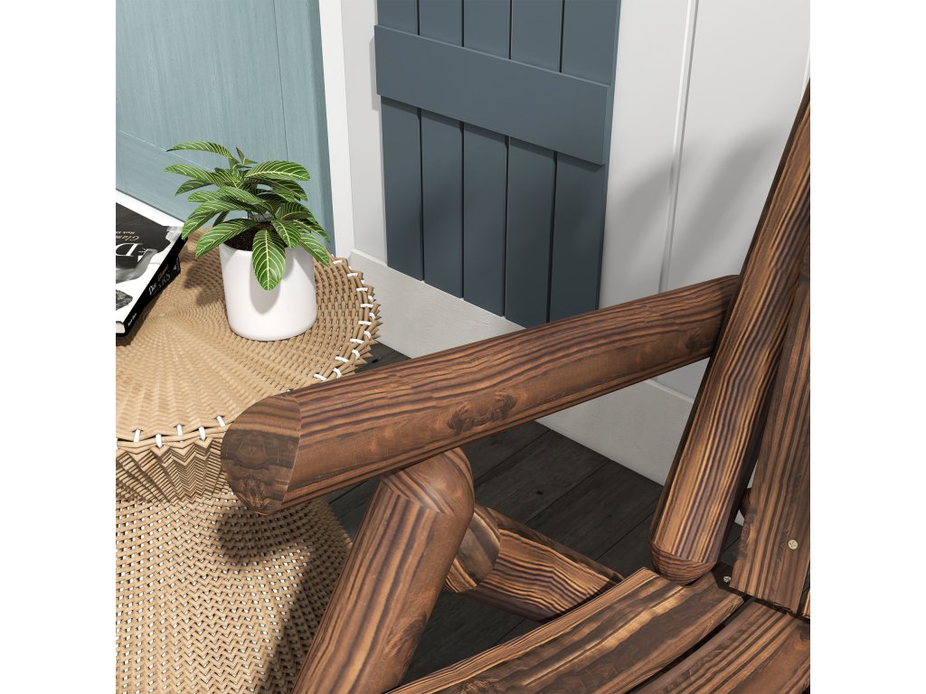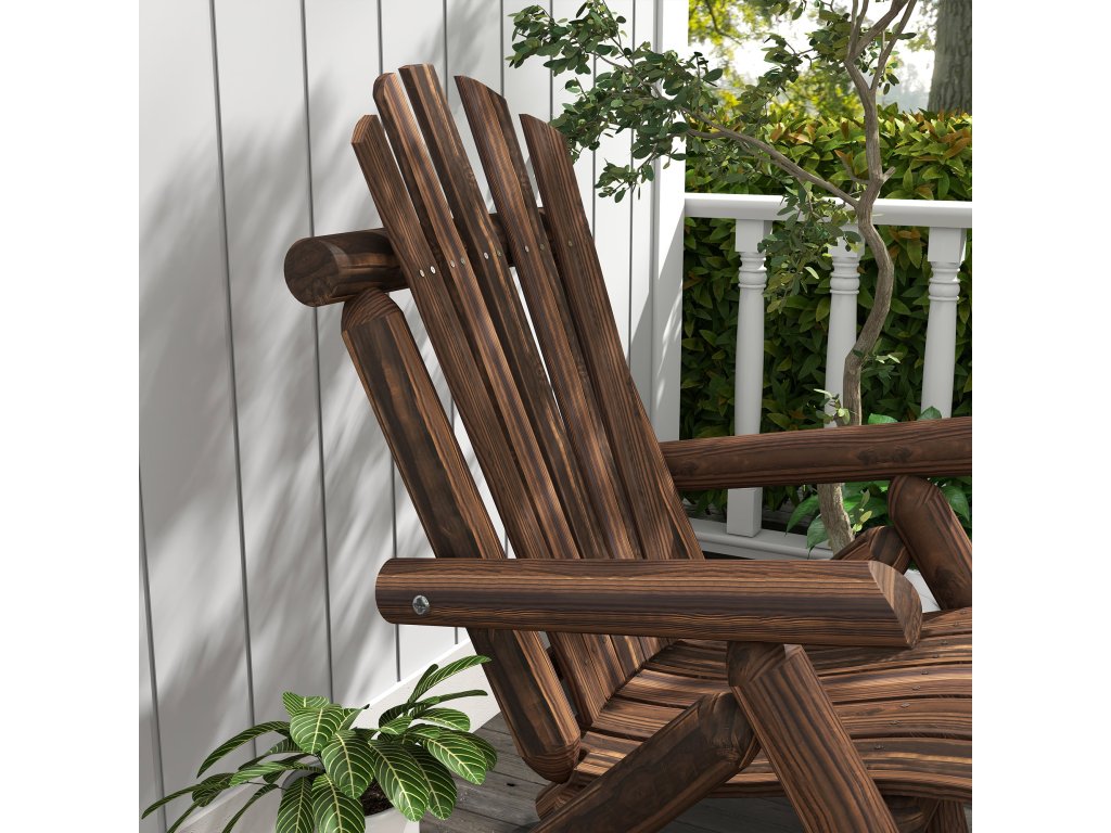 Zahradní židle Outsunny Adirondack dřevěná židle s vysokým opěradlem a područkami z jedlového dřeva, hnědá, 83 x 68 x 101 cm, ideální na zahradu a terasu | Aosom.de