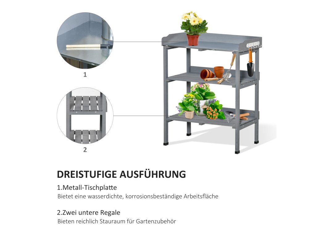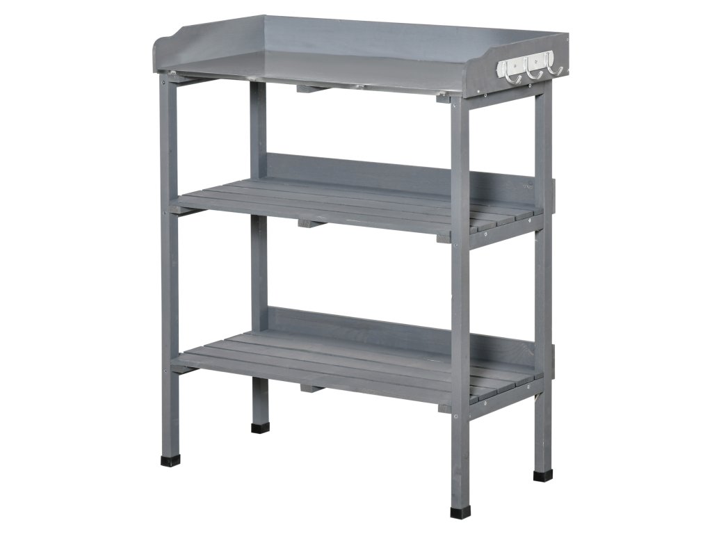 Zahradnický stůl Outsunny s kovovou pracovní deskou a dřevem 76x37x89cm ideální pro zahradu a balkon |
