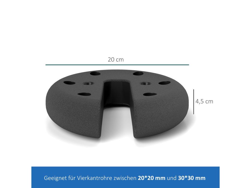 Naše přídavná cementová závaží o hmotnosti 4 x 2,2 kg zajišťují bezpečné upevnění stanů a altánů k betonu nebo asfaltu. Závaží lze skládat na sebe a přizpůsobit tak hmotnost podle potřeby.