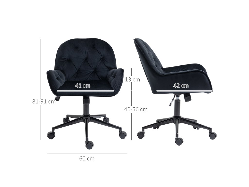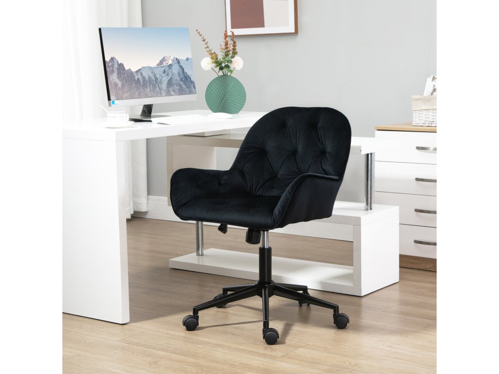 Židle do obývacího pokoje Vinsetto, výškově nastavitelná otočná židle, výškově nastavitelná kancelářská židle, sametový vzhled, černá| Aosom