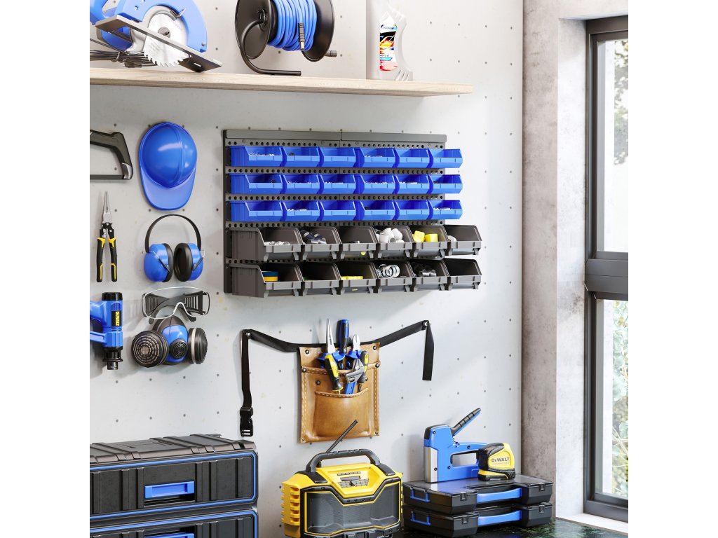 - Dostatek úložného prostoru: Tento úložný systém nabízí dostatek prostoru díky 30 přihrádkám ve dvou různých velikostech. Díky tomu můžete mít šrouby, matice, podložky, spojovací materiál a další předměty přehledně uspořádané a snadno dosažitelné